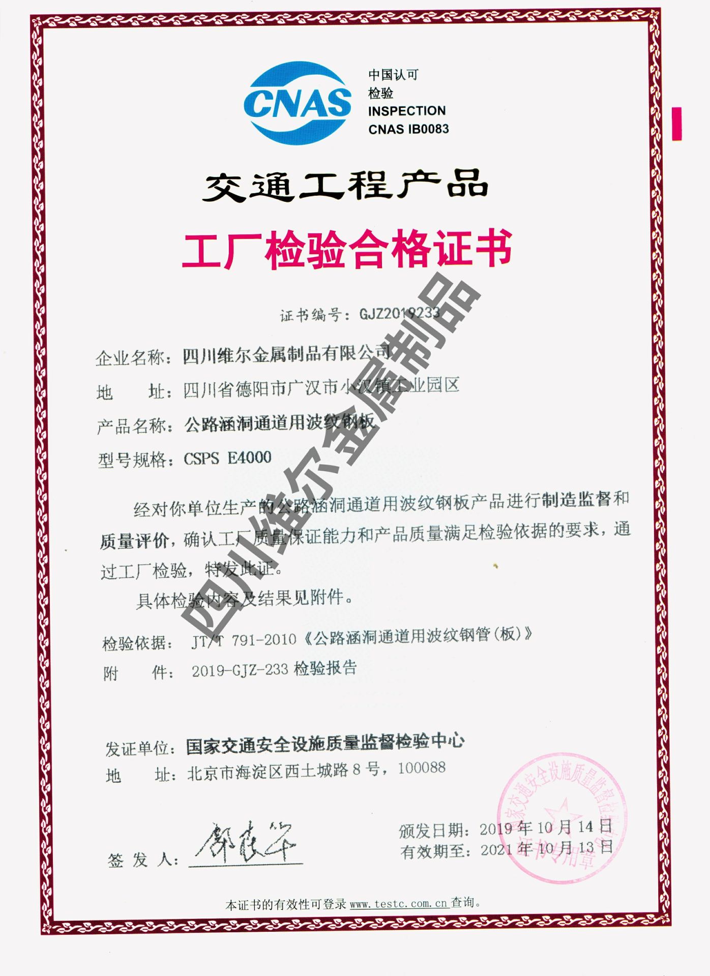 工厂检验合格证书